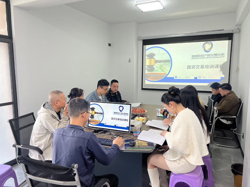 2026年3月27日,溫州聯(lián)交中心“陽(yáng)光交易”服務(wù)二團(tuán)前往龍港淘好房房產(chǎn)營(yíng)銷策劃有限公司開(kāi)展國(guó)有企業(yè)資產(chǎn)交易業(yè)務(wù)溝通及專題培訓(xùn)會(huì)。此次培訓(xùn)旨在進(jìn)一步規(guī)范國(guó)有產(chǎn)權(quán)公開(kāi)交易行為,推進(jìn)全市國(guó)有資產(chǎn)交易統(tǒng)一平臺(tái)建設(shè)。